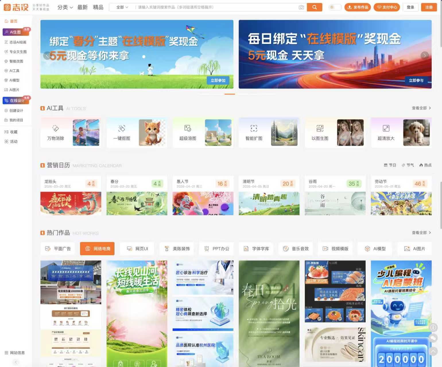 针对行业普遍难题,志设网(zs9.com) 全新上线,打造集 AI 生图、在线编辑、素材下载、收益变现于一体的一站式 AI 设计分享平台,用一套系统、一个账号,打通设计全流程,让专业设计变简单,让创意创作更值钱。